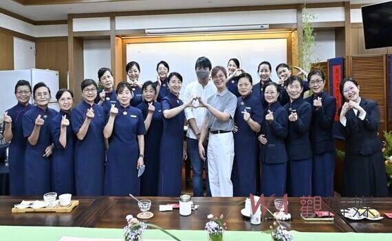 ▲靜思精舍師父(中) 参與分享會合影,(左)為慈濟志工林玉鳳。