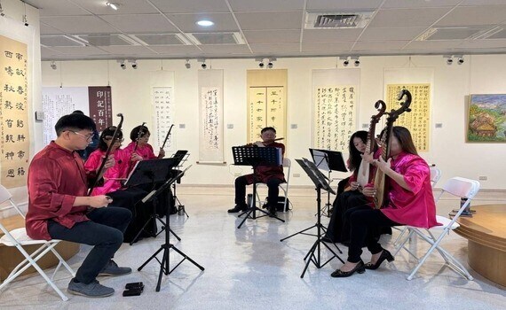 ▲吳志達老師率豐原國樂團於展覽現場演奏。