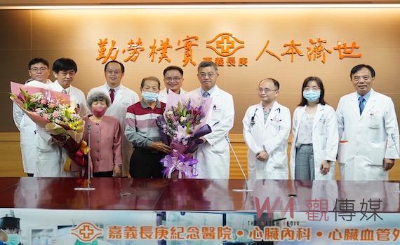 (圖/記者陳惲朋攝)(觀傳媒嘉義新聞)【記者 陳惲朋 /嘉義報導】嘉義長庚醫院今(13)日在楊仁宗院長親自主持,心臟內科 鍾昌珉醫師、楊登堯醫師及心臟血管外科黃耀廣醫師出席,在患者與家屬萬分感謝的氛圍下,召開心臟內、外科團隊共同合作,在高階主動脈手術設備儀器的複合式手術室(Hybrid OR),以高複雜度的經導管主動脈瓣膜置換術(TAVI),分別成功醫治92歲高齡張奶奶與71歲翁老先生重新找回健康、回復正常生活。