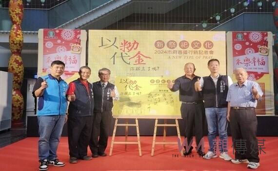 (觀傳媒中彰投新聞)【記者廖妙茜/台中報導】台中市環保祭祀文化再創新!台中市政府環境保護局今(13)日攜手大甲區公所、大甲農會於台中市府共同舉辦「以米功代金」首播記者會,會中與其他單位聯名簽署紙錢減碳儀式,並發表全台首創將祭祀紙錢變身,以大面額紙錢袖套外包裝結合平安米、疏文及祈福卡(簡稱以米功代金),鼓勵民眾用「以米功代金」來禮敬神明、答謝神恩,代替過多的紙錢焚燒,以更環保友善祭祀敬神方式。
