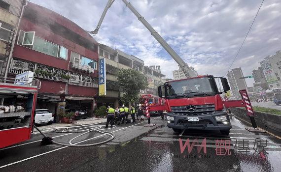 消防員發現民宅3樓以上冒出大量濃煙,還有3人躲在4樓屋頂待援,1樓鐵捲門緊閉,立即出動破壞器材將鐵捲門切割開後衝入火場搶救;由於屋內濃煙密布,立即由雲梯車靠近頂樓,在消防員引導下陸續將受困的3人救出,所幸3人都意識均清楚,疑似有輕微嗆傷。