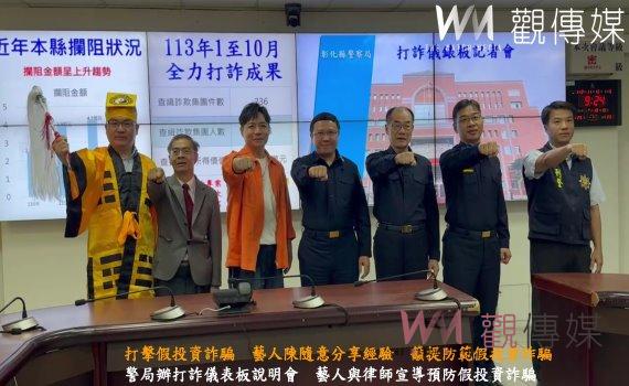 (觀傳媒彰化新聞)【記者陳雅芳/彰化報導】假投資詐騙猖獗,手法推陳出新,令人防不勝防,彰化縣警察局今(15)日舉辦「打詐儀表板」說明會,縣警局長陳明君親自分析詐騙數據及案件,並邀請知名歌手陳隨意分享自己遇到詐騙集團經驗,及律師郭棋湧一起宣導預防詐騙,呼籲大家小心詐騙,別讓你的辛苦錢化為烏有。