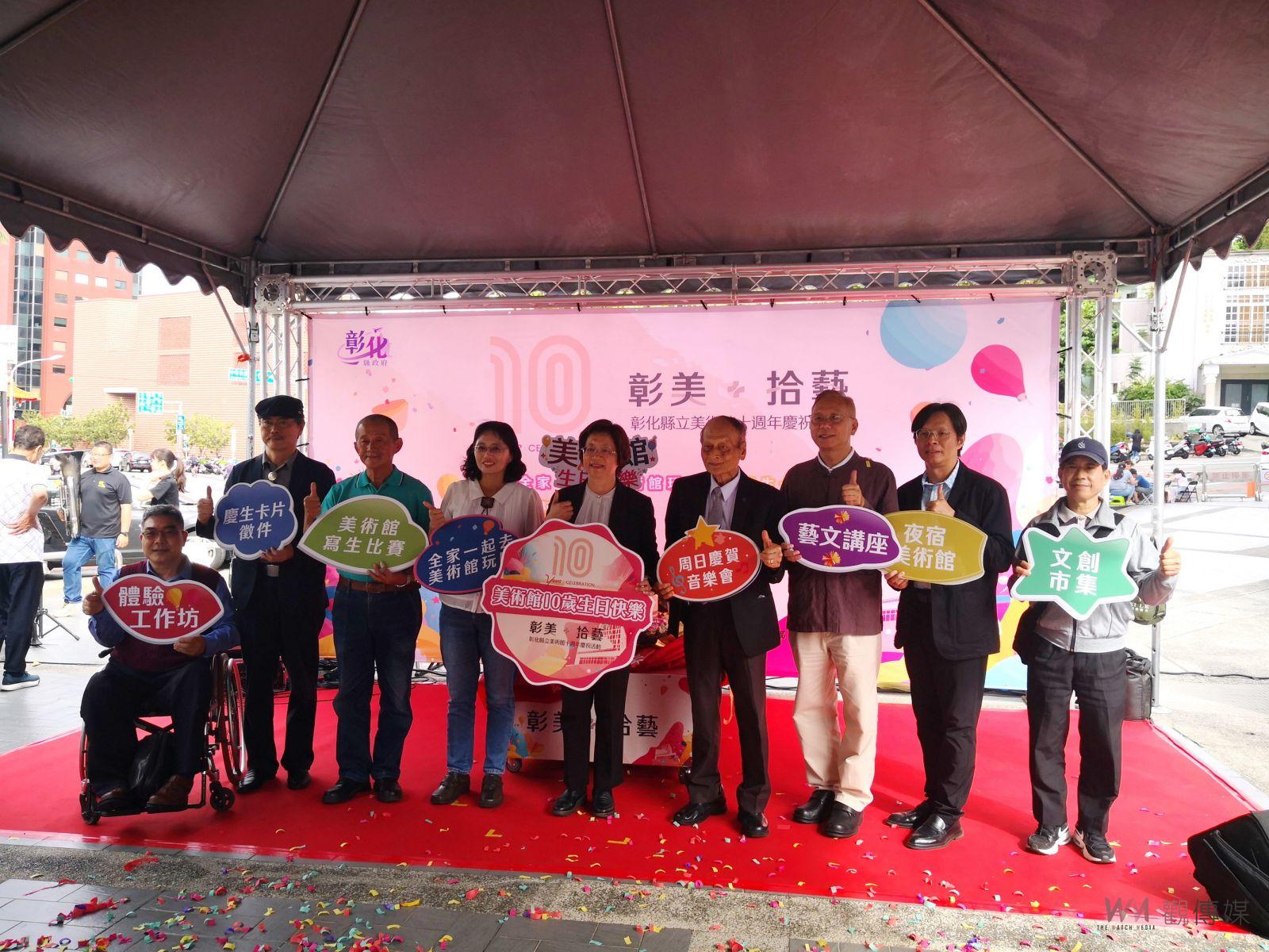 (觀傳媒彰化新聞)【記者陳雅芳/彰化報導】彰化縣立美術館10歲啦!生日會怎麼過?不只有蛋糕,還有文創市集、親子闖關和夜宿美術館,今(17)日上午,彰化縣立美術館在館前廣場舉行「10週年慶」開幕式,縣長王惠美邀請藝文界共同慶祝,並揭開未來精彩活動序幕,現場還有抽獎活動與音樂演出,為活動增添熱烈氣氛。
