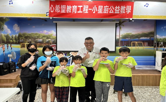 ▲2024年第六屆小星廚環台公益教學活動來到二林鎮萬合國小,星級主廚楊俊民與學童們分享他的精湛廚藝。
