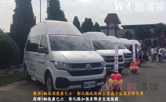 ▲彰化縣政府獲捐5輛高頂復康巴士,價值合計千萬元,縣長王惠美感謝善心公司企業和人士,也祝福善行義舉能得到更多迴響。