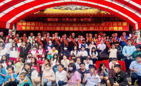 (觀傳媒中彰投新聞)【記者顏淑娟/台中報導】台中南天宮今(23)日舉辦73週年宮慶,遵循古禮舉行團拜祈福,禮讚關聖帝君忠義孝悌精神,同時表揚80所國中小共109名孝行楷模,弘揚孝道正能量。民政局長吳世瑋前往致慶表示,感謝南天宮主任委員吳光雄多年來率領全體幹部推廣公益慈善及教化民心的宗教志業,回饋社會、造福地方,並祈求關聖帝君庇佑市政昌隆、市民平安順利,也祝福南天宮神威顯赫、香火永傳。