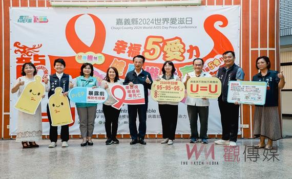 (觀傳媒嘉義新聞)【記者吳東林/嘉市報導】12月1日世界愛滋日,嘉義縣衛生局今 26日舉辦2024世界愛滋日「幸福5愛力 健康攏抵嘉」記者會,嘉義縣長翁章梁,縣議員江志明、江佩曄、疾病管制署南區管制中心陳靜瑩科長、衛生局長趙紋華等人聯手宣導幸福5愛「愛認知、愛戴套、愛篩檢、愛包容、愛無距」觀念,守護自己及伴侶的健康。