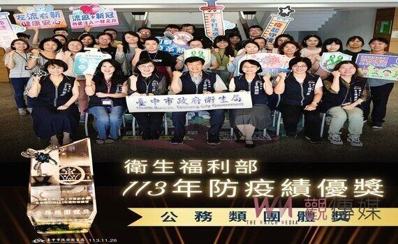 (觀傳媒中彰投新聞)【記者廖妙茜/台中報導】衛生福利部26日於台北喜來登大飯店舉辦今年度防疫績優獎頒獎典禮,台中市政府衛生局榮獲公務類團體獎,由衛生局副局長陳麗娟代表出席領獎。衛生局表示,衛生局憑藉多項創新措施與優異績效,脫穎而出,成為六都中唯一獲獎的單位。