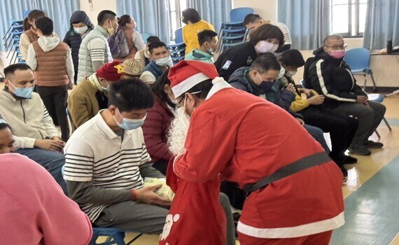 ▲今年耶誕前夕,台中區處除了延續以往的募集區處同仁們的捐款,致贈慰問金與需要幫助的弱勢團體,更別出心裁的裝扮成耶誕老人並送上祝福及關懷。