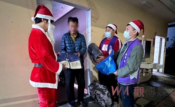 (觀傳媒雲林新聞)【記者蘇榮泉/雲林報導】受大陸冷氣團南下影響,雲林縣氣溫驟降,為保障街友不因寒冷而受困,雲林縣政府社會處攜手人安基金會啟動低溫關懷機制。12月23日晚間,社會處社工與人安基金會雲林平安站楊宗賢站長,再次深入各街頭巷尾進行夜間訪視,為街友送上禦寒物資、熱食,並以聖誕節應景裝扮帶來歡樂與溫暖。