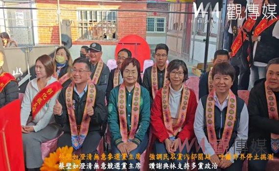 蔡壁如說,這時候民眾黨需要是內部訴求團結,外部需要很多很多的朋友來支援,她很感謝彰化議長謝典林的支持,認為議長應是要表達台灣要有多黨政治存在,不是只藍綠,有機會再跟他說謝謝。