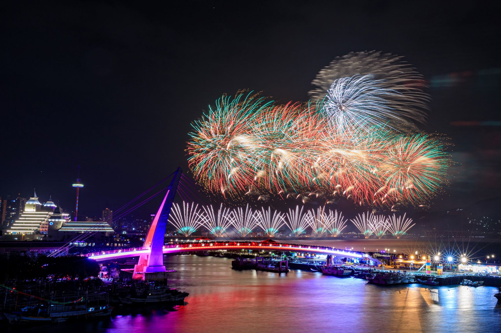 新北市政府每年於淡水河左右岸舉辦的跨年首發活動「閃耀新北1314跨河煙火」,是全台最早迎接2025年的跨年煙火,今年煙火秀將由國內曾受邀至國外擔任世界煙火大賽的評審的知名煙火設計師黃泰操刀設計,將於12月31日20點25分演出,為期13分14秒,象徵一生一世的美好祝褔,屆時淡水河上空將施放超萬3萬發煙火,營造出長達1公里的璀璨天際,將為現場觀眾帶來一場難忘的跨年慶典!