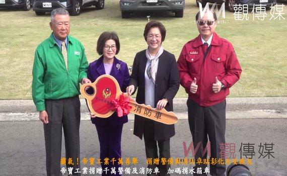(觀傳媒彰化新聞)【記者陳雅芳/彰化報導】霸氣捐出比超跑還貴的化學消防車及10輛巡邏車!台灣車燈龍頭、股票上市公司的「帝寶車燈」今(30)日上午捐贈10輛巡邏車及1輛化學消防車給彰化縣政府,價值達2256萬元,帝寶執行長許叙銘當場加碼,允諾再捐出1部小型水箱車,方便穿梭在鹿港巷弄之間,也讓這場捐贈總額再攀高到將近3000萬元。