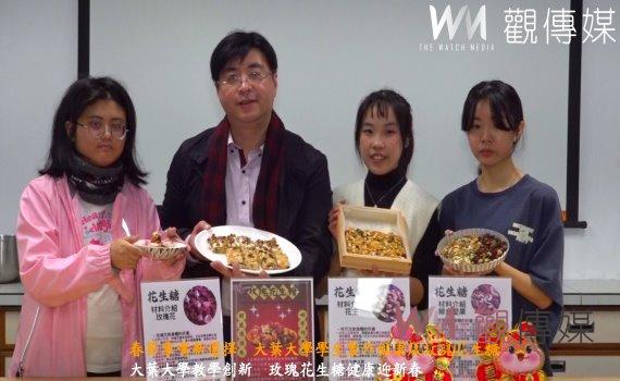 (觀傳媒彰化新聞)【記者陳雅芳/彰化報導】花生糖健康版!花生熱量高,過年怎麼吃更健康?大葉大學藥用植物與食品保健學系助理教授許文光「食品加工學」課程,今(2)日教學生製作年節應景的「玫瑰花生糖」,健康又美味,學生們開心表示要回家做給家人吃。
