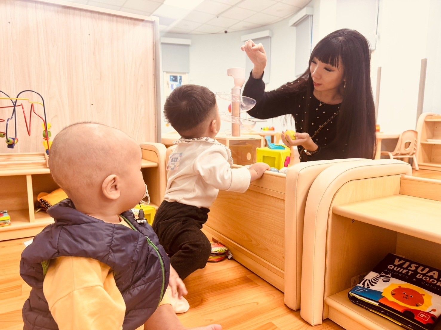 為了確保每位小朋友都能獲得充分的關懷,基隆市政府在「照顧比」方面進行全面優化,確保每4名嬰幼兒即有1名專業的托育人員陪伴。此外,還配置了中心主任、護理人員、行政人員及廚工各1名,總共8名專業人員悉心照顧16名寶寶,讓每位孩子都能在最優質的環境中成長。
