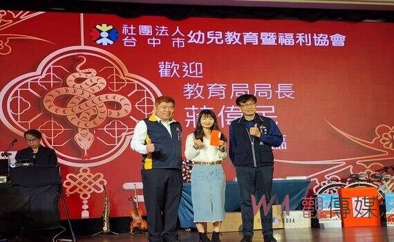 (觀傳媒中彰投新聞)【記者廖妙茜/台中報導】社團法人台中市幼兒教育暨福利協會今(4)日舉辦第32週年聯合尾牙餐會,「公私協力,育兒加倍!」台中市政府教育局長蔣偉民代表市長盧秀燕出席表示,感謝協會多年來在學前教育的付出與努力,也感謝協會扮演政府與幼兒園溝通的橋梁並努力協助推動各項幼教政策,讓台中市幼教環境在穩定中成長。