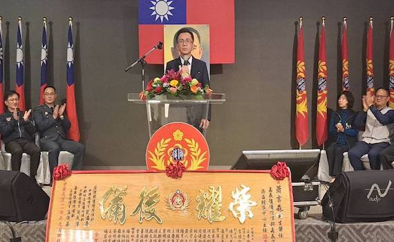 ▲在各界祝福下,蕭吉森接嘉義市後備中心西區主任,允將發揚忠義精神。