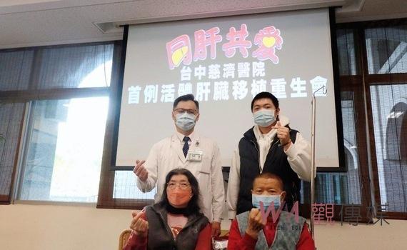 ▲台中慈濟醫院完成首例活體肝臟移植手術,舉辦「同肝共愛」重生會,慶祝64歲翁先生重獲新生。
