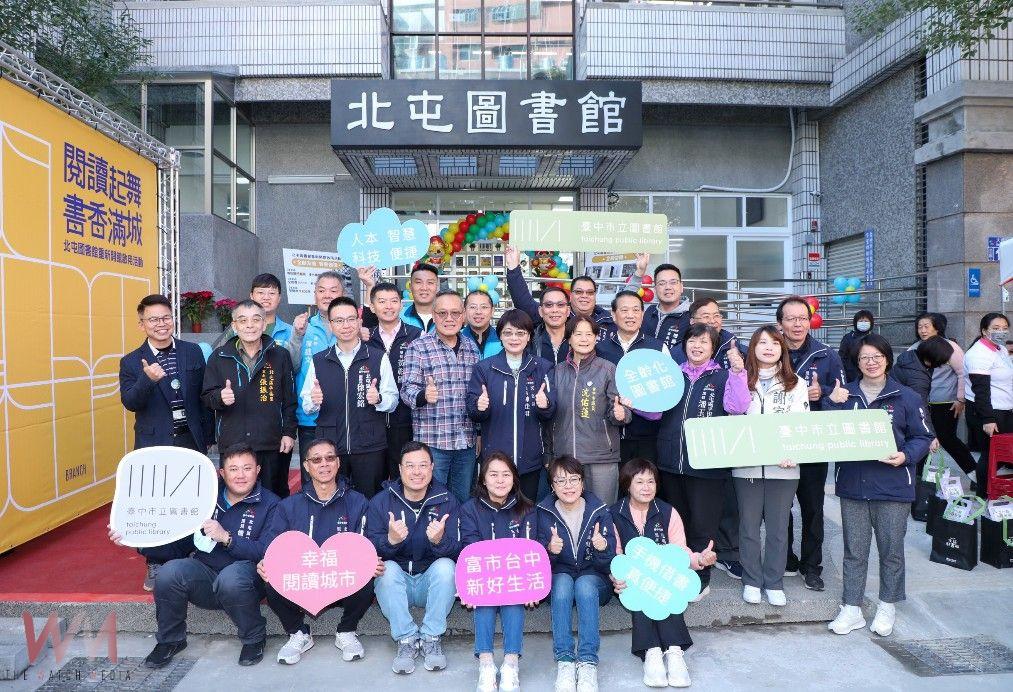 文化局表示,北屯圖書館因為地點便利深受北屯區民眾喜愛,為讓圖書館更符合現代閱讀需求,此次改造特別進行耐震補強、完善無障礙設施,以及重新規劃館舍空間動線,採分齡分眾設計,有兒童閱覽區、青少年閱覽區、期刊報紙區及樂齡區等,以「生命教育」為館藏主題。今天到館的家長表示「一樓有兒童專屬的閱覽區,親子廁所及哺集乳室,讓爸媽能與孩子安心享受閱讀時光,真是太棒了」。此外,全館導入RFID智慧系統,提供手機APP自助借書服務,讓科技融入閱讀,便利又高效。