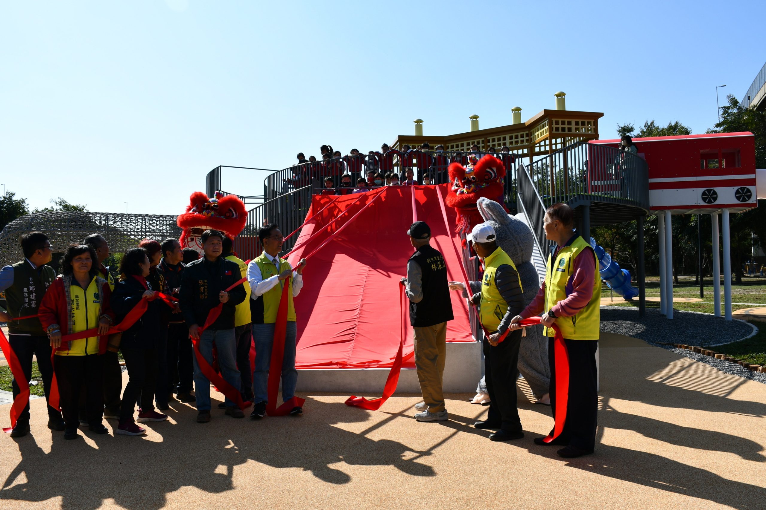 林世賢表示,特色遊戲場自今年5月開工,歷經用地問題、施工困難及颱風影響等挑戰,於12月24日順利通過安全檢測,農曆年前啟用正逢其時,讓市民多了一處闔家出遊的好去處。