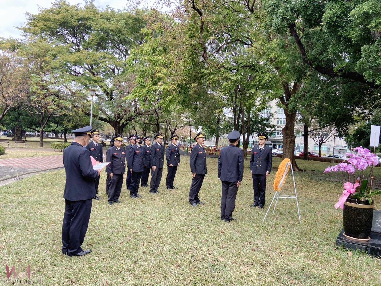 消防局表示,今日追思悼祭地點,為南區半平厝公園(原崇倫公園)及英才公園,分別在已故小隊長陳俊宏、義消副分隊長郭寬雄銅像前獻花,並行鞠躬禮,以感念他們的英勇事蹟。