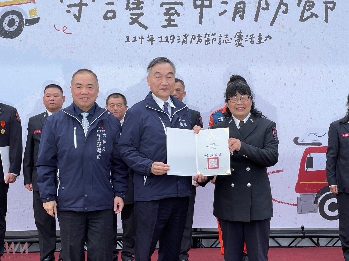 黃副市長特別提到,希望市民朋友遇到消防員時可以說聲謝謝,向他們表達過去一年守護大家的感謝之意。此外,市民朋友注意自己家中的防火防災安全,提升對防火防災觀念的重視,就是對消防員最大的幫助,共同營造幸福宜居的台中市。