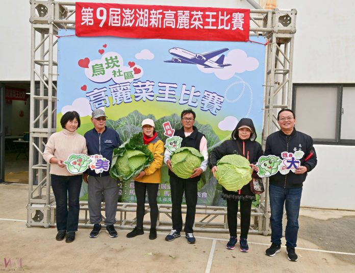 (觀傳媒離島新聞)【記者郭偉民/澎湖報導】農曆年前「第9屆澎湖新高麗菜王比賽」19日在烏崁社區活動中心登場,澎湖縣長陳光復到場替農友加油打氣,展現對在地農業的支持與重視。最後由葉興國以單顆最重19.1台斤奪下高麗菜王;單顆體積最大與最漂亮獎,則分別由李玉葉與葉朝順奪得。