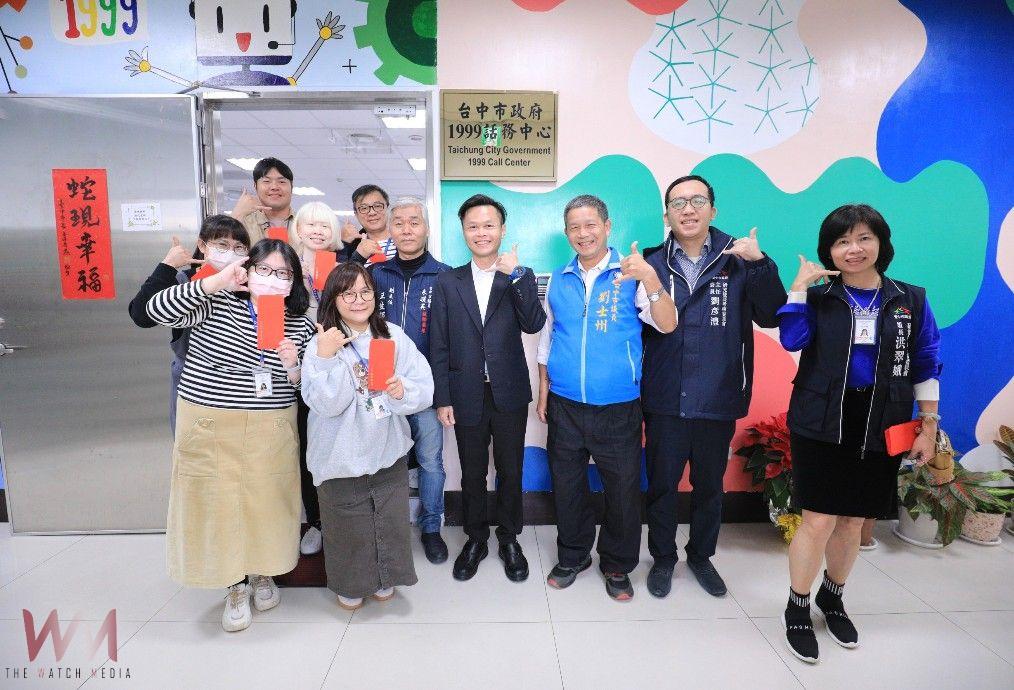 (觀傳媒中彰投新聞)【記者廖妙茜/台中報導】今年春節假期長達9天,台中市1999專線照常營運,提供24小時不打烊服務。台中市政府副秘書長林育鴻今(21)日在研考會主委劉彥澧陪同下,代表市長盧秀燕特地到1999話務中心慰問致贈春節紅包,逐一與話務人員親切交流,向每位堅守崗位的同仁致以誠摯的謝意,同時也期勉1999將這份溫暖傳達到民眾手中,陪伴台中市民「蛇現幸福」迎新年!
