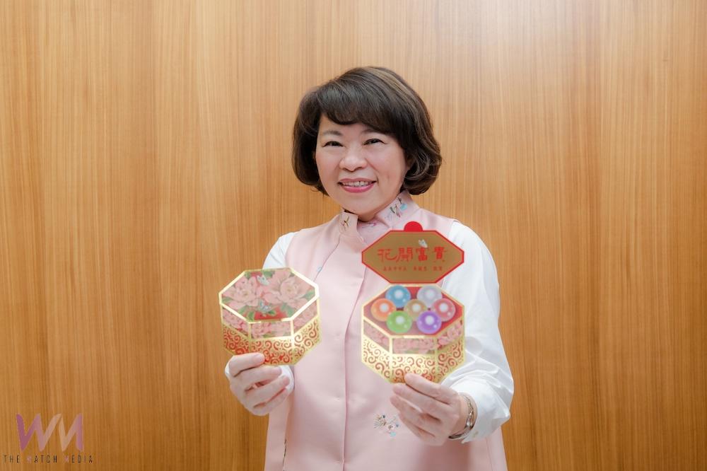 黃敏惠市長開心的展示今年的限量開運小紅包。(圖/嘉義市政府提供)