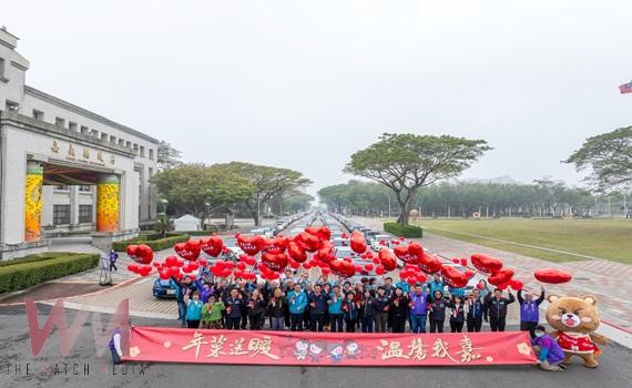 年菜列車出發前,翁縣長親贈捐助單位感謝狀,揮手歡送車隊深入鄉里送愛,隨後啟程前往水上鄉一戶案家親送紅包和年菜。