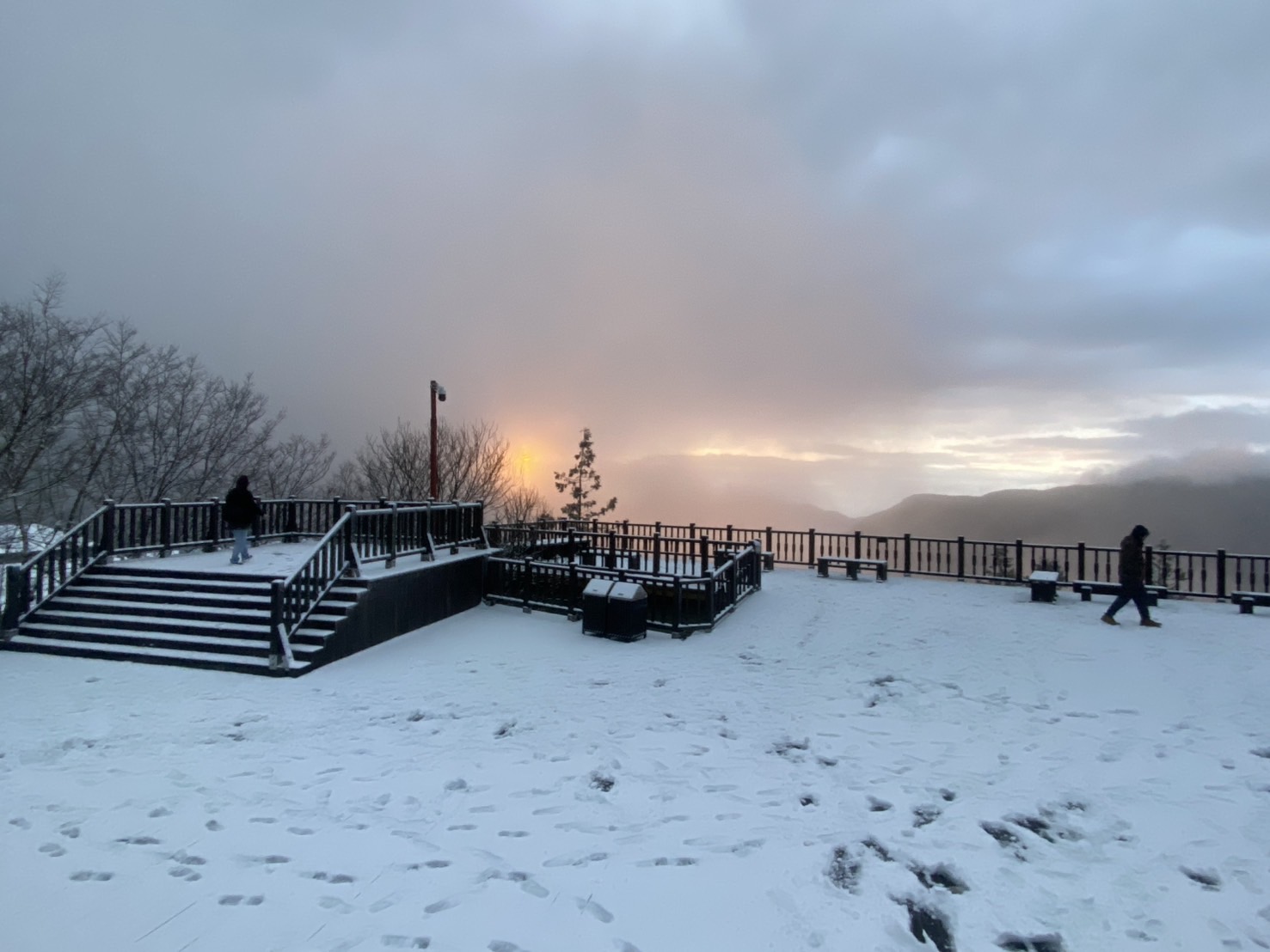 太平山今(4)日凌晨最低溫為零下1度,從3時開始斷斷續續下冰霰,目前溫度0度,所積冰霜2公分已慢慢消融中,而接近太平山莊路段,大約20.5k處有道路結冰,園區因此延至7:00開園。園區同時出動鏟雪破冰車進行道路破冰,7時開園,當時排隊車輛約38台,至7時30分入園161人,小車54輛。為安全起見,警方於往翠峰湖林道分歧處設置管制點,上山雖然不需要掛雪鏈,但還是要注意行車安全。