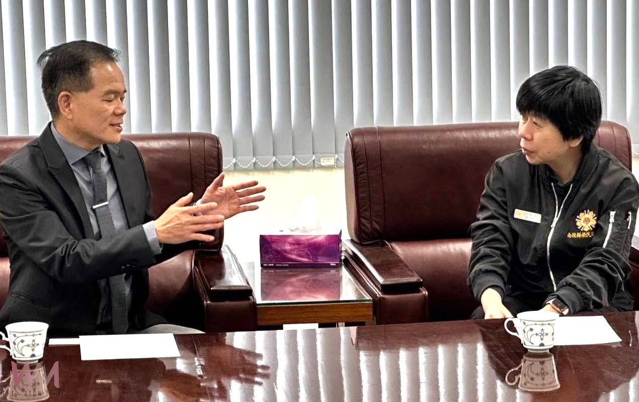 ▲南投縣榮民服務處王怡文處長(右)拜訪南開科大江昭龍校長(左)。(圖/記者石振賢翻攝)