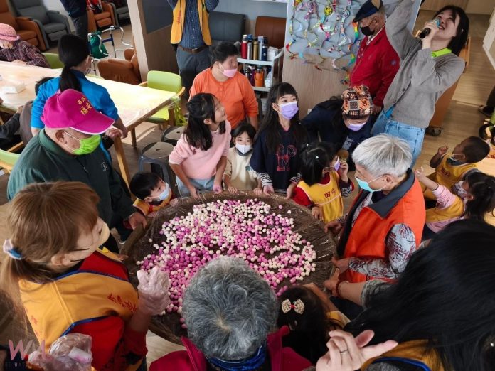 「來,手掌心搓一搓,這樣才會圓!」93歲的陳阿嬤笑著教導身旁的小朋友,並用手輕輕扶著孩子的小手,一起將糯米糰搓成圓滾滾的湯圓。許多孩子發揮創意,捏出愛心、星星等各種可愛造型,讓場面充滿童趣與驚喜,不時傳來陣陣笑聲。