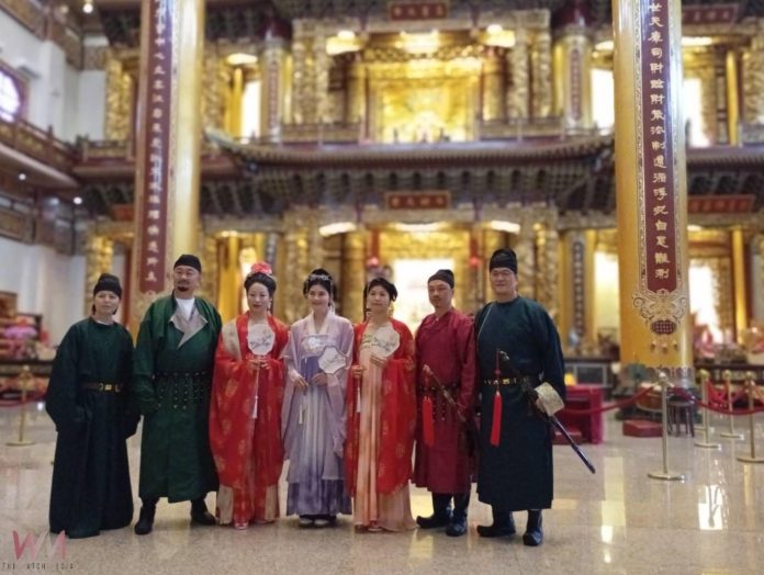 北港武德宮擁有許多極具藝術價值的傳統工藝,為唐服拍攝提供了絕佳背景。例如由人間國寶洪平順大師創作的「擂金畫」八卦門;薪傳獎得主林志明精雕的九龍池、高達80尺氣派非凡,內部金光燦爛列柱參天的廣天大道院,如同大唐宮殿般壯麗。在這些場景中穿著唐服拍攝,優雅的姿態,宛如穿越千年,重回盛世!