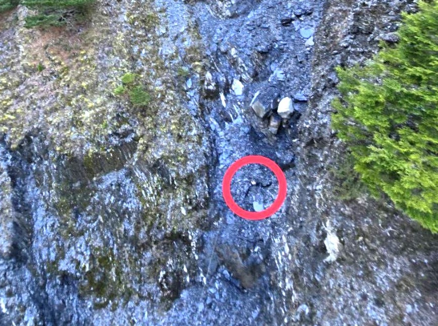 在烏拉孟斷崖下方約400公尺處發現罹難者。(圖/記者石振賢翻攝)