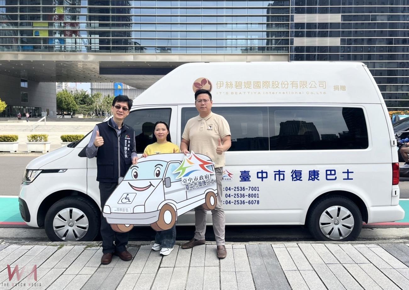 (觀傳媒中彰投新聞)【記者廖妙茜/台中報導】伊絲碧媞國際股份有限公司關懷社會,捐贈台中市政府社會局1輛高頂復康巴士,以及1萬4,000瓶洗髮精和沐浴露。社會局副局長廖宗侯今(17)日代表出席交車儀式並頒贈感謝狀,感謝該公司連續4年付出愛心與關懷,與市府共同照顧弱勢家庭,也提升身心障礙朋友行的安全與便利。