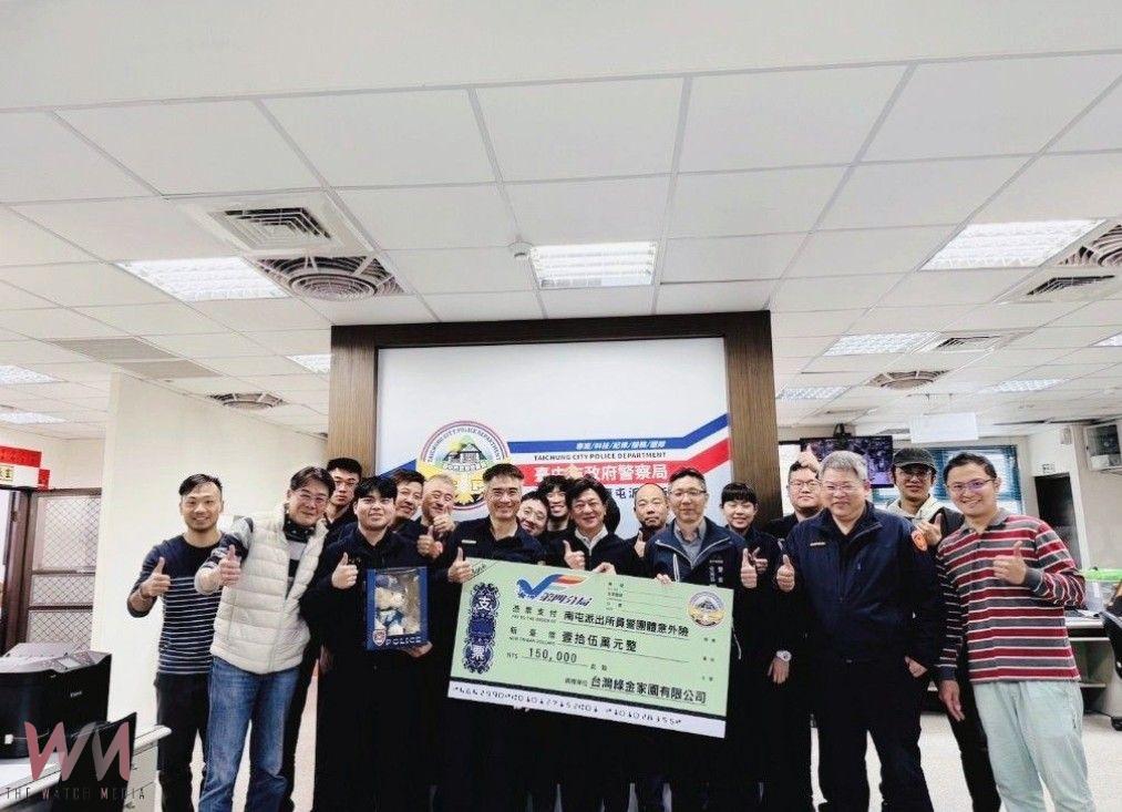 (觀傳媒中彰投新聞)【記者廖妙茜/台中報導】臺中市政府警察局第四分局南屯派出所日前舉行員警加保團體意外險保費捐贈儀式,感謝本市知名企業熱心公益,慷慨捐贈新臺幣15萬元作為員警團體意外險保費。此舉不僅展現對第一線警察的關懷,更是以實際行動,為近50名員警提供一份安心保障,讓他們在執勤時多一份安全後盾。