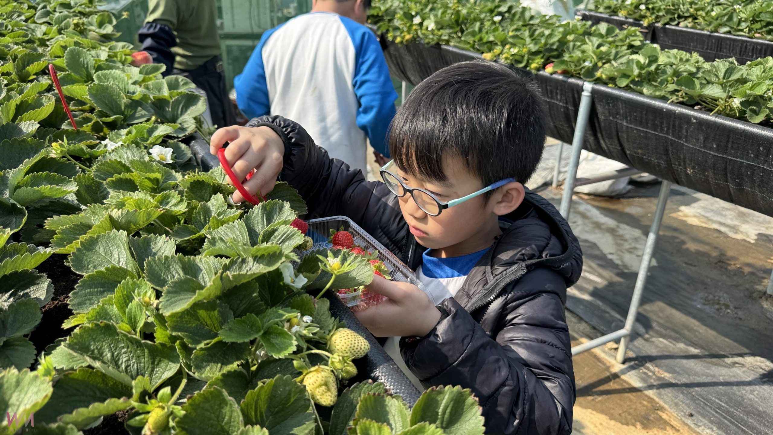 活動現場,孩子們在老師和張鴻源的陪同下,紛紛動手體驗採摘過程。國聖國小一年級學生楊穆橙滿臉興奮地說:「我看到一排排紅通通的草莓,真的好像進入了一個甜美的世界!」二年級的王曉晞則激動地補充道:「我第一次知道草莓不只是美味,還需要用心呵護才能長得這麼好!」三年級的何大仁則對同學們分享自己的發現:「採草莓的過程讓我明白了,原來農民伯伯是這麼辛苦,每一顆草莓背後都有一段故事。」