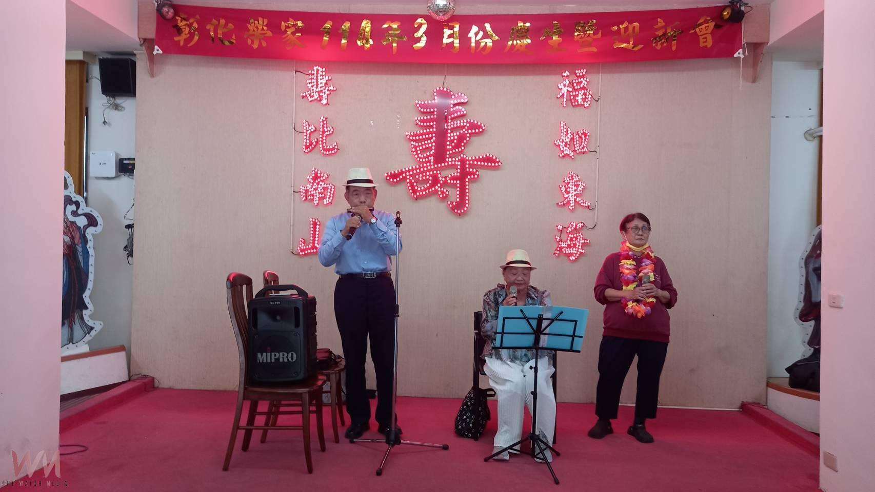 (觀傳媒彰化新聞)【記者陳雅芳/彰化報導】為了讓住民長輩感受溫馨歡樂的生日氛圍,彰化榮民之家今(5)日舉辦3月份慶生會,邀請來自眷村的音樂搭檔張愛民與熊綉娟,以「群星會」為主題,帶來《老歌風華,感恩歲月》敬老音樂饗宴,兩人以一把口琴與深情歌聲,演繹多首經典老歌,勾起長輩們的珍貴回憶,讓壽星們在熟悉的旋律中共度歡樂時光。