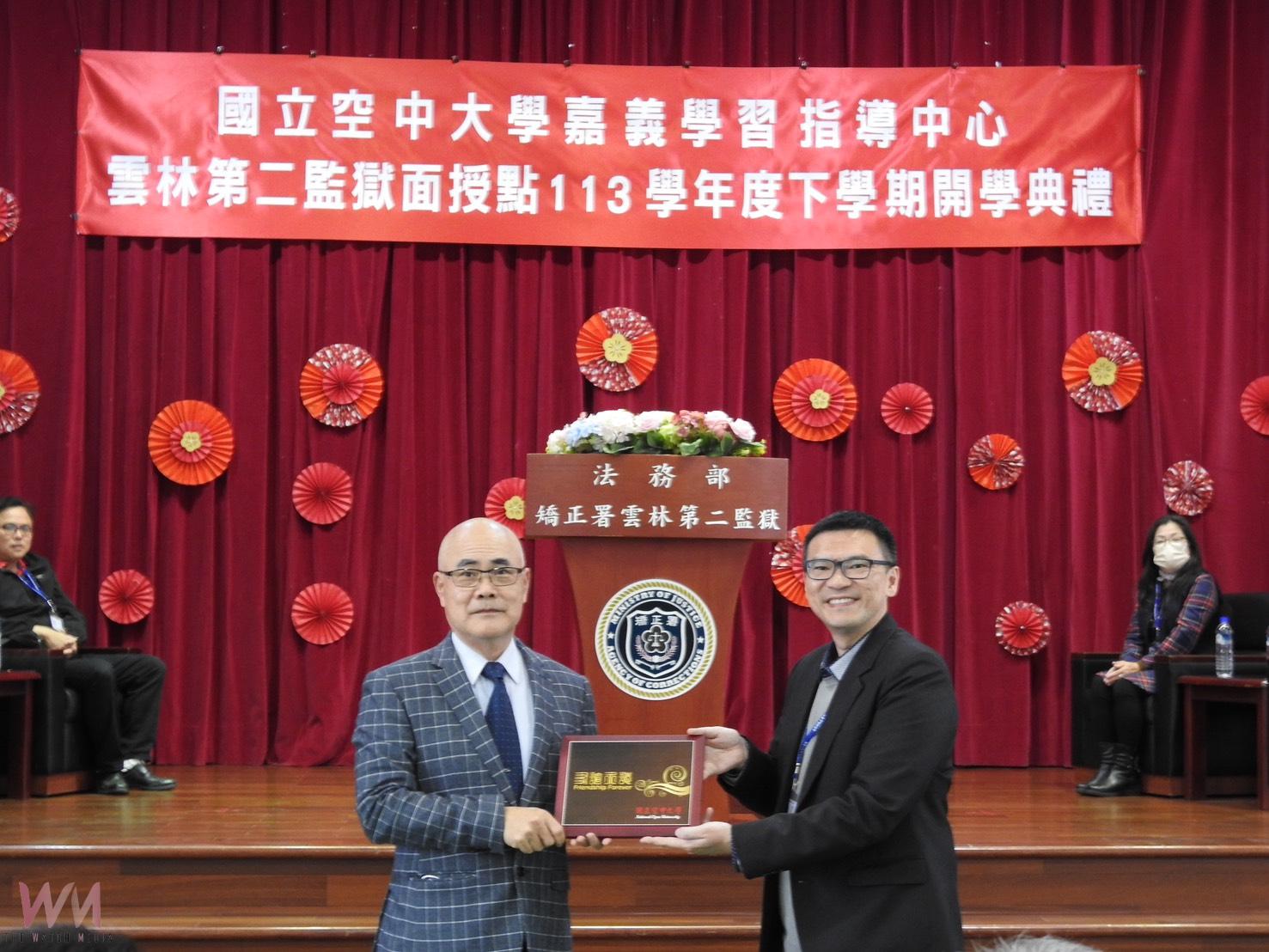 國立空中大學嘉義學習指導中心與雲林第二監獄合作開班授課。(左起)典獄長林豐材、空大主任曾秉倫。(圖/雲林第二監獄提供)