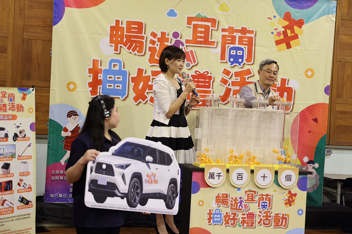 縣府表示,為鼓勵全國民眾至宜蘭消費拚經濟,自去(113)年12月25日起至114年3月2日止推出「消費滿額抽汽車」限定活動,全國民眾至宜蘭縣內「食宿遊購行」五大類別任一合法店家消費滿新臺幣500元以上,並取得紙本發票或購物證明,上傳至活動官方網站,同時登錄個人資訊,即可參加抽獎活動,本次限定抽獎活動共計1萬4,682筆有效發票及購物證明參加抽獎,2次公開直播抽獎,總共抽出31項大小獎及133張優質好禮券。詳細活動資訊,請查詢「暢遊宜蘭抽好禮」活動官方網站。