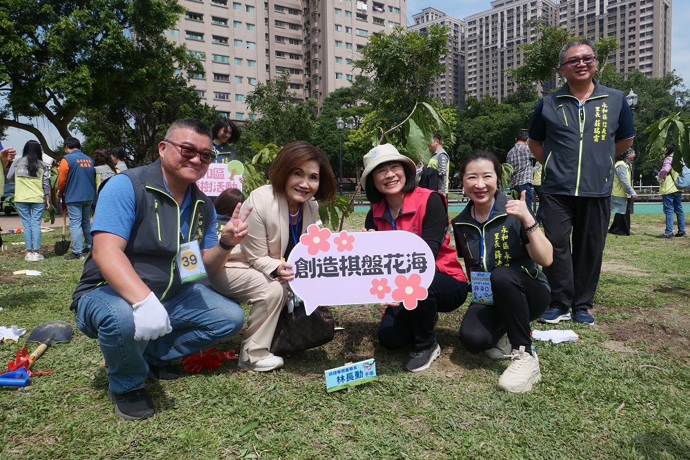 周慶珍表示,永和地狹人稠,民眾整天穿梭在擁擠的人潮車陣中,不妨在下班後或假日中走入仁愛公園,感受自然植物的綠色氛圍,植樹更是讓生態永續、減少碳排最值得做的事,感謝永和各界人士的支持,一起用行動做環保,為地球減碳降溫。