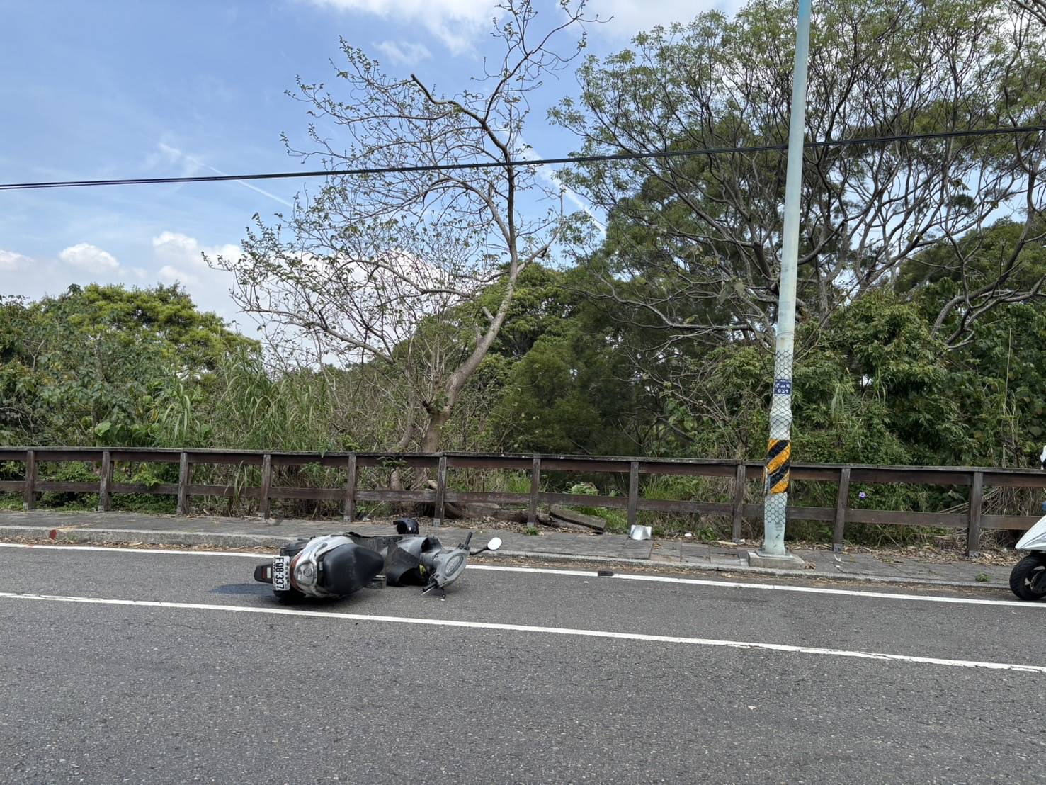 事故發生時,男大生騎著普通重型機車,由於彎道陡峭且路況不佳,疑似未能及時控制車速,導致機車失控摔出,並撞擊路燈柱,造成機車嚴重損毀。