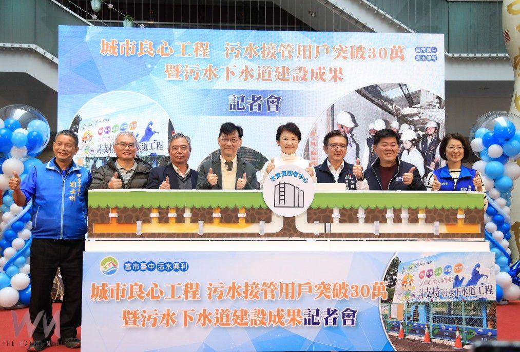 (觀傳媒中彰投新聞)【記者廖妙茜/台中報導】台中市長盧秀燕上任後自108年起積極推動污水用戶接管倍增計畫,截至今年2月底,增加約13.1萬戶,成長幅度為歷任市長之最,讓全市污水接管戶數累計突破30萬戶。台中市政府水利局今(17)日舉行記者會,盧市長感謝水利局同仁及各區議員、里長共同努力,也感謝市民朋友配合,讓這項「看不見的工程」得以大幅成長,讓台中邁向更宜居的幸福城市。會中也頒發感謝狀給多位里長,對其協助用戶完成接管表示謝意。
