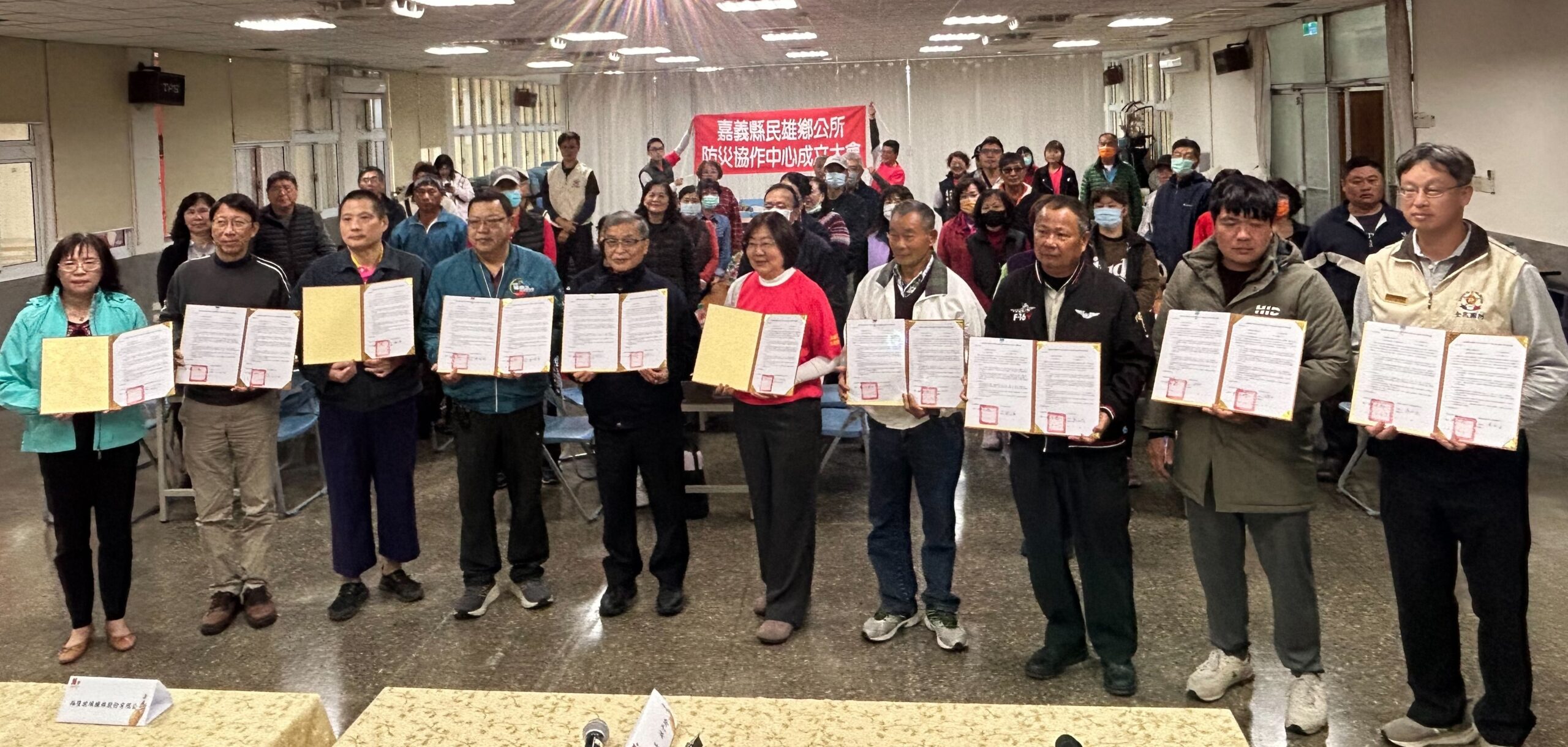 (觀傳媒雲嘉南新聞)【記者邱嘉琪/嘉義報導】為提升災害應變能力,降低大規模災害發生時因人力與物資無法即時調度而影響救援效率,民雄鄉公所18日上午10時成立「防災協作中心」,與「福隆玻璃纖維股份有限公司」、「民雄文教基金會」、「嘉義後備軍人民雄輔導中心」、2個韌性社區及4個社區發展協會共同簽署「防災協作中心合作備忘錄」,積極落實政府機關與民間團體公私協力精神,強化災害防救業務合作夥伴關係。