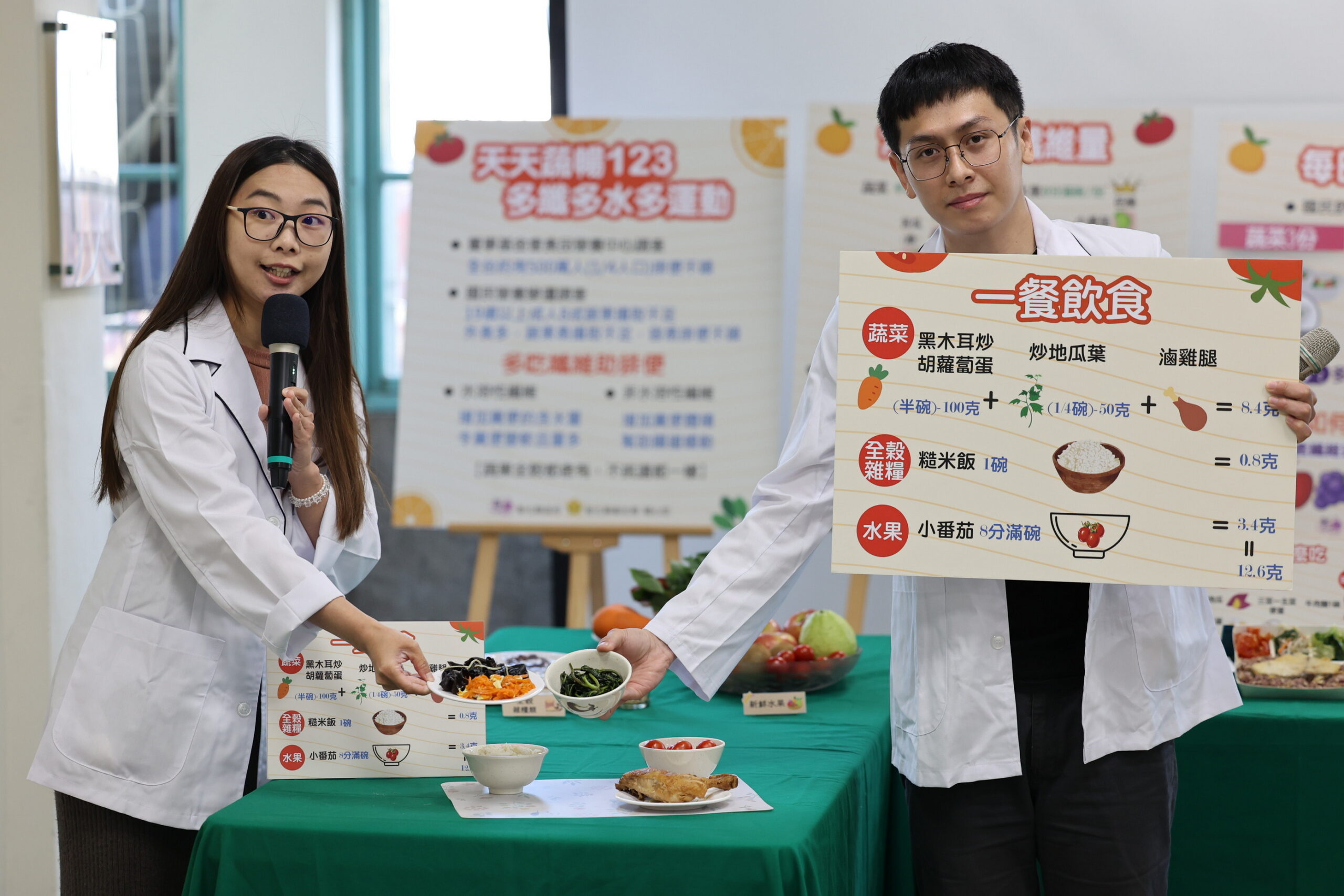 為讓民眾能夠更直觀地理解健康飲食原則,活動由營養師示範健康飲食搭配。例如,若晚餐食用一碗牛肉麵,雖然提供碳水化合物與蛋白質,但蔬菜量明顯不足,建議搭配半碗燙青菜(如空心菜、菠菜等),再加上一顆芭樂或蘋果,以補足膳食纖維攝取。