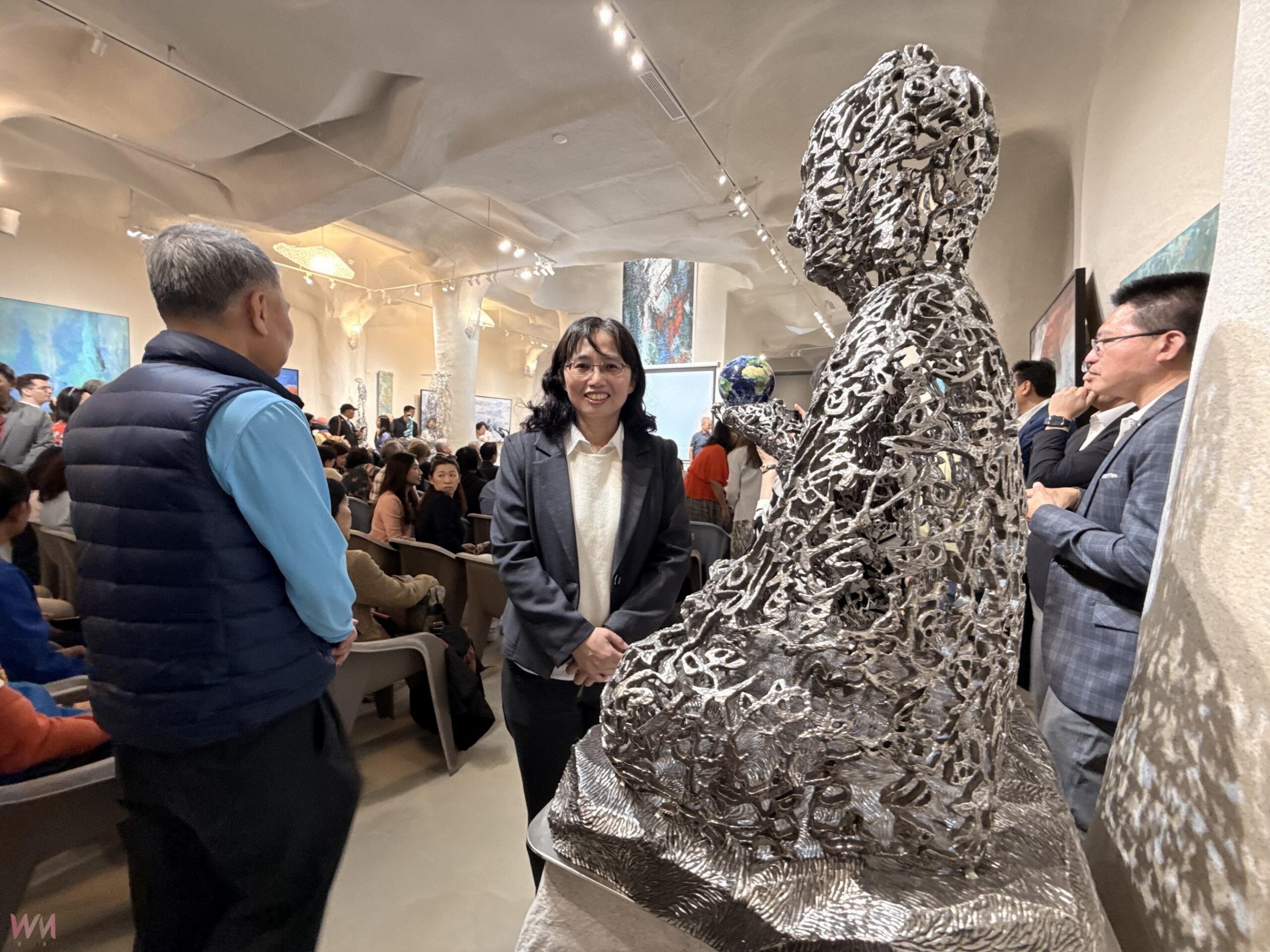 許文融教授表示,建造美術館的主要目的是將東方雕塑工藝與現代藝術融合,並創造一個能夠與觀眾心靈對話的空間。他提到,美術館的建築外觀本身就是一件藝術創作,牆面上的不鏽鋼草書文字,與整體建築的形態呼應,展現出強烈的藝術生命力。
