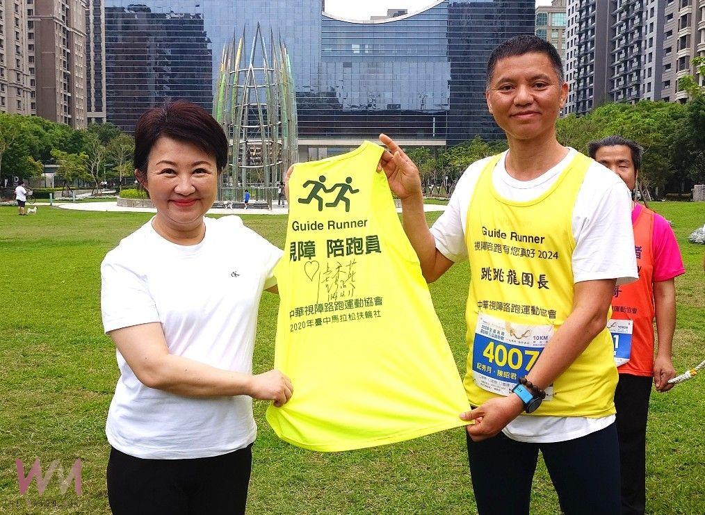 (觀傳媒中彰投新聞)【記者廖妙茜/台中報導】落實推動運動平權, 台中市長盧秀燕拍片廣邀市民朋友們一起為視障跑友們加油打氣,台中市政府今(16)日推出視障路跑公益宣傳影片,預告即將於4月19日在潭雅神綠園道登場的「2025全國視障公益路跑」。影片中盧市長戴上眼罩實際體驗視障跑者的感受,並參與陪跑訓練,化身陪跑員與跑者呂冠霖攜手奔跑,用行動表達對身障運動參與的支持,也邀請市民到場為跑者加油打氣。