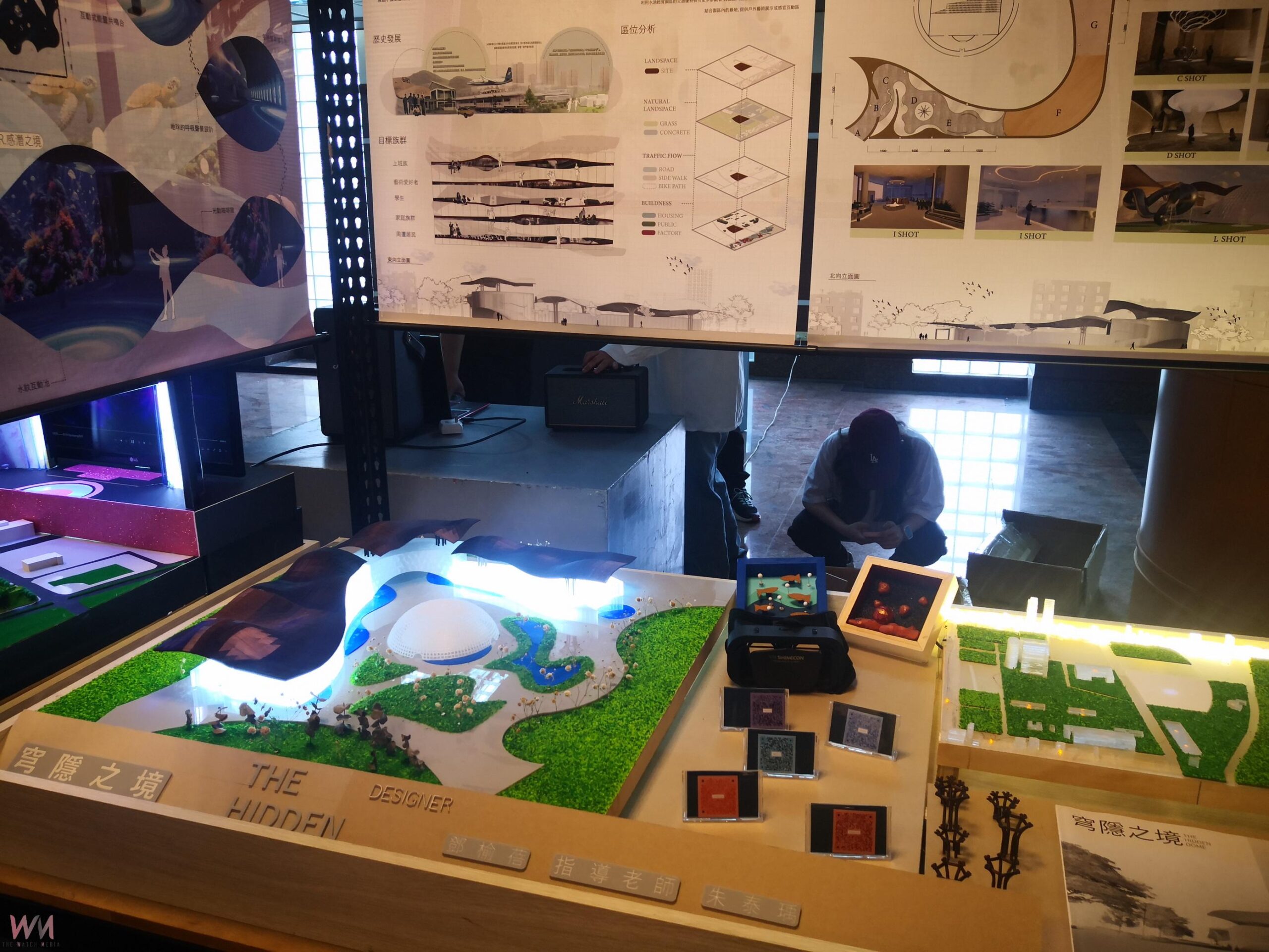 空間設計系的作品以「迴聲」為主題,共展示了11組空間設計作品,涵蓋商業旅宿、藝術體驗、避難空間等設計。學生們的作品回應了當代社會與城市生活的多重面貌,並針對未來生活與社會議題進行了深入反思。例如,朱泰瑀與張東港指導的「木築森林」設計強調低碳建築,倡議木造建築作為環保與人類生活的未來選擇,並以東京為範本,對比混凝土與鋼筋建築的環保效益。