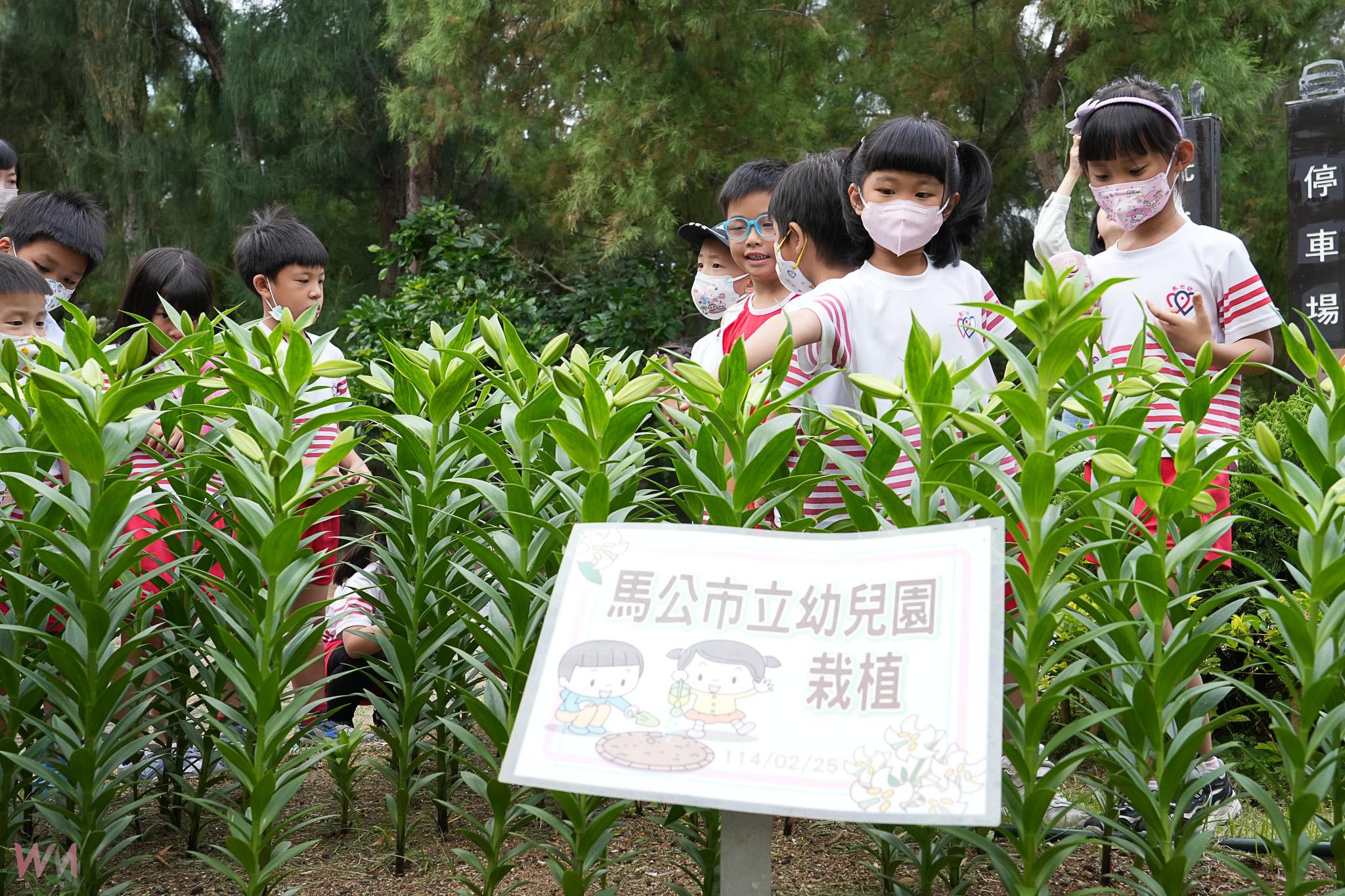 今年2月底幼兒園學童親手將百合球根種下,期待初夏百合花季萬朵盛開的芬芳。(圖/郭偉民攝)